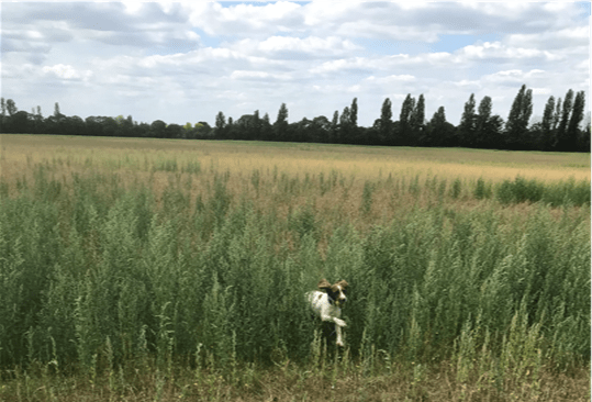 Twice a day we complete a full circuit of the farmland and I have noticed, with the chang-ing seasons, that the wild flowers and weeds have completely taken over. The land was ploughed back in April and grass sown, presumably for silage, however there is now no sight of the grass, just a mass of various types of greenery that have colonised the land. Initially there were many types of Mallow, enjoyed by the bees. More recently I have seen Cornflowers and Raged Robin growing. In total I have counted 10 types of what I would call wild flowers.