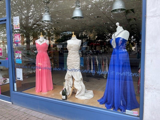 If you are looking for a dress but don’t want to spend a fortune, do remember the Princess Alice Hospice shop on Shepperton High Street (see photo) is happy to help you find an absolute bar-gain dress. Available in the bridal shop on the first floor are dresses, veils, shoes, outfits for the mother of the bride and also prom dresses. Why not take a look. And of course anything you do find but which needs adjusting, can also be fixed by local seamstress Shepperton Tailoring who has transformed so many bridal gowns to the perfect fit and style (details below).