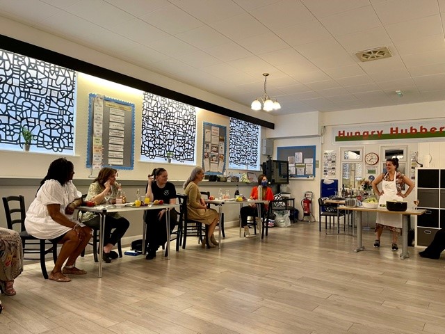 The huts outside in the zen area house a number of long term projects, including a clothes/toy swap shop, with quality donations available to those who need a hand and to get across the message to children that we need not throw away in this world, but swap instead. This started during the lockdowns and has proved popular ever since. There is also a surplus food centre where food is both donat-ed and available. The Inspired Hub works with Surplus to Supper receiving a weekly delivery and also serves food made from sur-plus every Friday lunchtime.